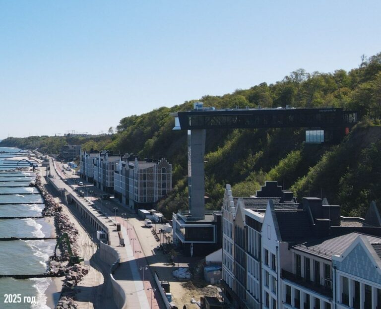 В Калининградской области продолжается серия публикаций о проектах берегозащиты, в которой особое внимание уделено укреплению оползнеопасного склона в Светлогорске. Работы, выполненные в 2015–2017 годах на участке от Солнечных часов до улицы Верещагина, стали одним из самых масштабных инженерных проектов в регионе, направленных на предотвращение разрушения побережья. Укрепление склона включало комплекс инженерных решений, рассчитанных на долгосрочное обеспечение устойчивости территории. Среди применённых технологий — подпорные стены габионного типа, удерживающие сооружения на сваях, армогрунтовые конструкции, а также противоэрозионная защита и система ливневых лотков, обеспечивающих регулируемый отвод воды и снижение риска размыва. На момент завершения строительства укрепления представляли собой сложную инженерную структуру, предназначенную для стабилизации грунтов и предотвращения оползневых процессов. Спустя несколько лет растительность полностью покрыла откосы и инженерные сооружени