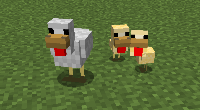 - Ранние версии (Beta). Курицы спаунились в травянистых биомах, но не имели вариаций окраса.