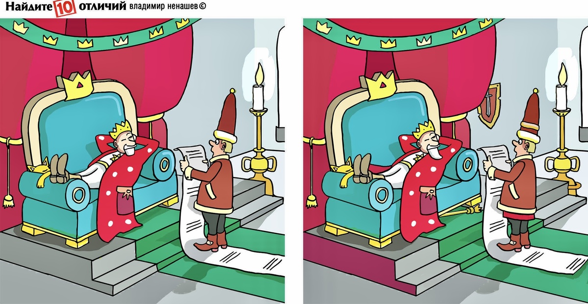 10 отличий, тест на внимание про весёлую жизнь. Позитив.