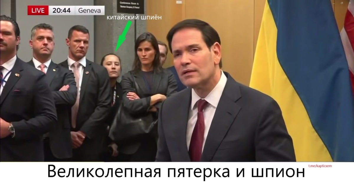 Не смог пройти мимо такого кадра Суровая американская делегация с Рубио во главе после переговоров дает интервью прессе. - а что за мелкая тетичка с азиатской внешностью подпрыгивает на заднем плане я не знаю-))) Но мы выясним. И это не творчество ИИ и не коллаж, это ссука реальный кадр из видео. схемы и карты