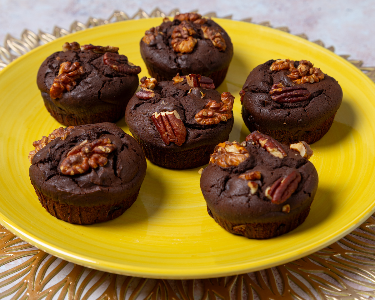 Шоколадно-грушевые кексы с грецким орехом в аэрогриле