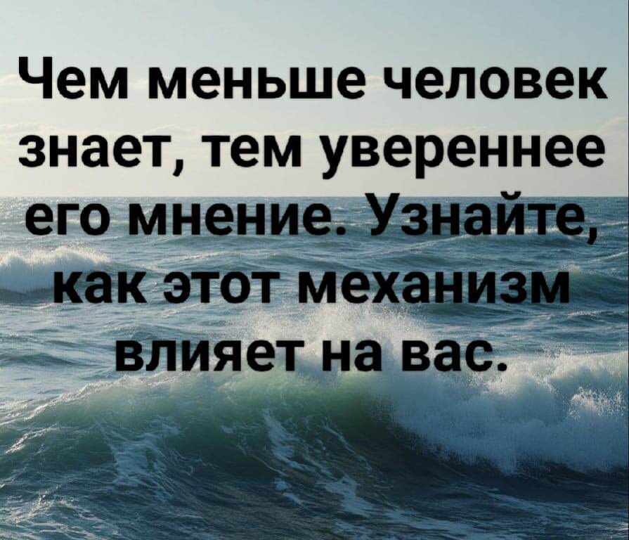 Наверняка вы встречали таких людей: коллега, плохо разбирающийся в теме, но громко всех учит. Или комментатор в соцсетях, который уверенно рассуждает о сложнейших вопросах, не имея никакого образования. Это не просто глупость или наглость. Это — эффект Даннинга-Крюгера, когнитивное искажение, которое мешает людям осознать свой уровень некомпетентности. Но самое главное — этот эффект в той или иной мере касается каждого из нас. Сегодня разберемся, как он работает и как с ним бороться. В 1999 году психологи Джастин Даннинг и Дэвид Крюгер экспериментально доказали: чем меньше человек знает в какой-либо области, тем он склонен переоценивать свои знания. И наоборот: настоящие эксперты часто страдают от неуверенности, потому что видят всю сложность предмета. Представьте себе чашу знаний: Эффект Даннинга-Крюгера — это не просто глупость. Это системная ошибка нашего мышления, которая работает в двух направлениях: Осознание этого эффекта — мощный инструмент для личного роста. Вот