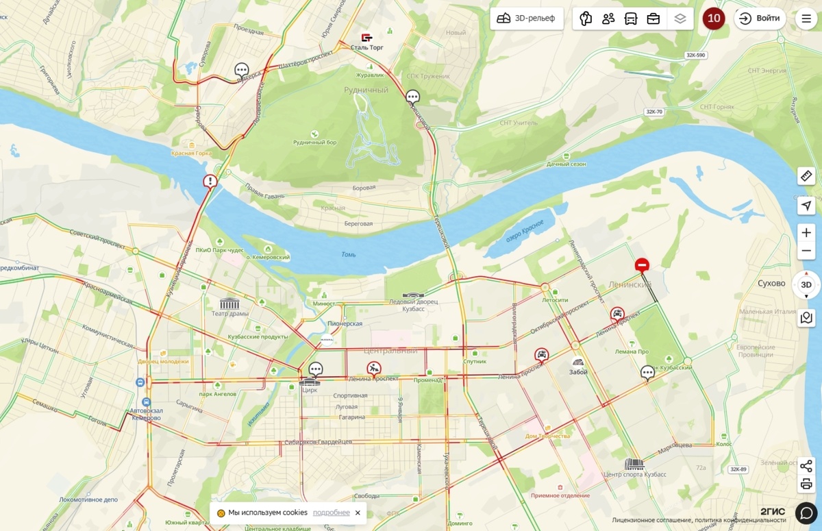 Сегодня утром на дорогах областного центра Кузбасса возникли сильные пробки. Сегодня утром, 24 ноября, в Кемерове возникли десятибалльные пробки. О дорожной обстановке сообщает сервис 2GIS. Самые мощные дорожные заторы фиксируются на проспектах Октябрьском и Ленина, Кузнецком, улице Терешковой. Затруднено движение на Логовом шоссе, улицах Суворова и Рутгерса, проспектах Советском и Химиков, улице Автозаводской. При этом стоит отметить, что на данный момент аварийность на дорогах города обычная, однако проезд занимает больше времени. Уточним, что на Кемерово обрушился мощный снегопад. Это и могло повлиять на ситуацию с пробками.