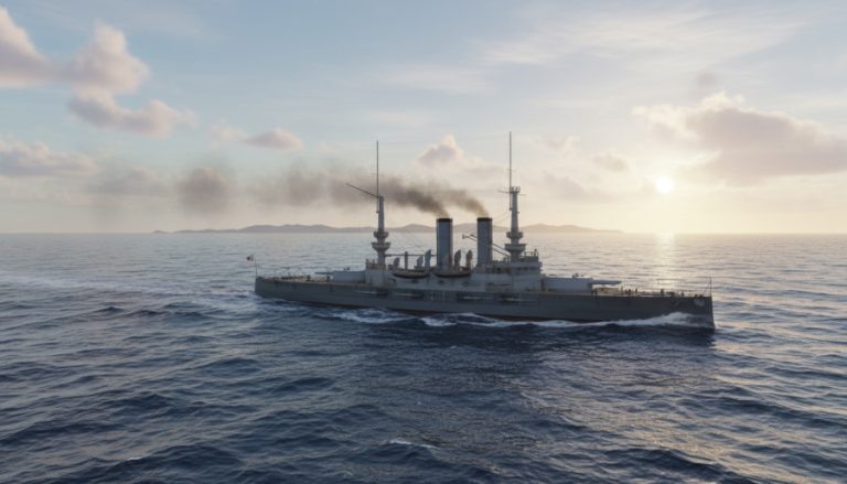 Габариты этого корабля – почти идентичны габаритам реальных «Трех Святителей», кроме увеличенной на один фут ширины (длина по ватерлинии 371 фут или 113,08 м, длина наибольшая 378 футов или 115,21 м, ширина по ватерлинии 74 фута или 22,56 м, осадка при нормальном водоизмещении 27 футов или 8,23 м). КМУ – двухвальная, мощностью 12000 л.с., с 16-ю огнетрубными котлами, расположенными поперек корпуса. Запас угля (нормальный/полный) – 750/1000 тонн. Скорость — 16,0 узлов по проекту.