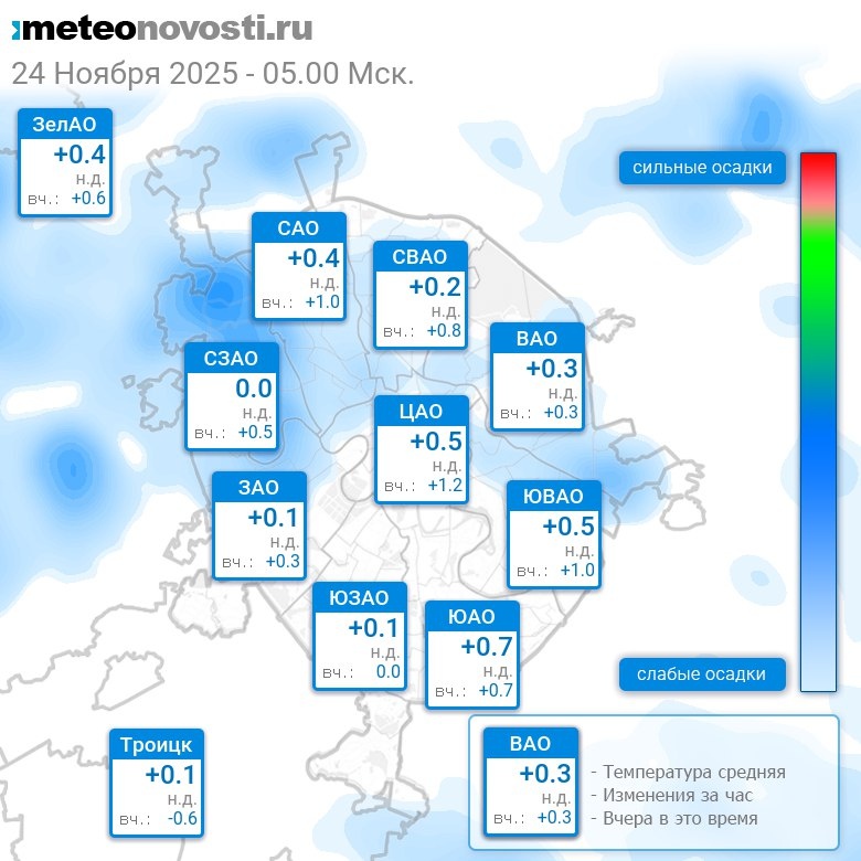 В 5:00 в Москве было от -0.3°C до +1.1°C, средняя температура +0.3°C #погода #Москва #осень #температура #24ноября #понедельник