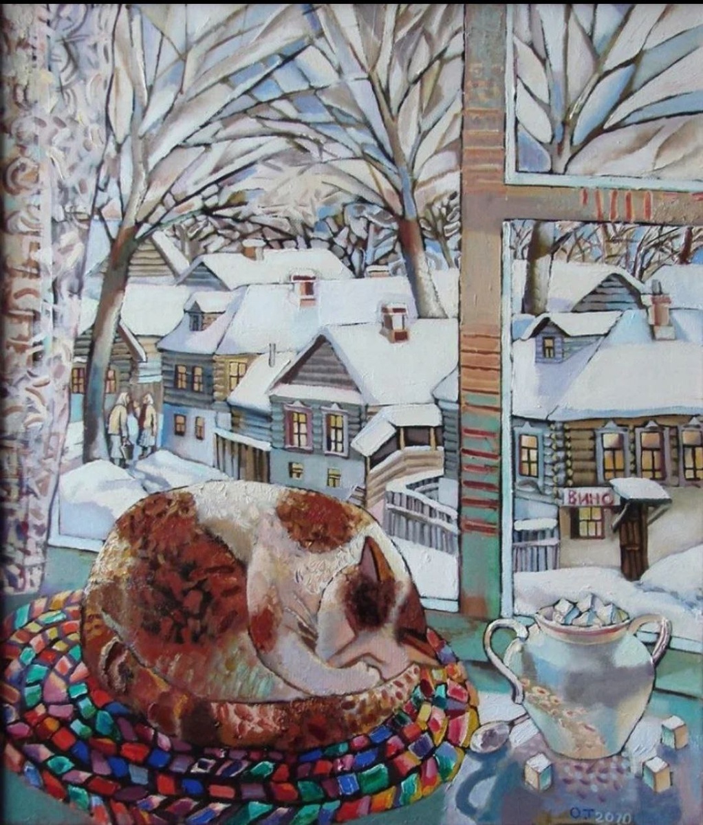 #поэтическоеутро Ноябрь .... С каждым новым днём Всё ближе зимняя граница. Всё реже покидаешь дом, Всё слаще хмурым утром спится. Иными стали вкус и цвет У приготовленного чая. Живёшь со множеством примет Зимы, и все их замечаешь. Глядишь — и мокрый снег не нов, И лужи в ледяных оправах... Печальнейший из всех миров — Ноябрь, Всё — таки, Вы правы... Терентий Травник Картина: О. Трушникова. Кот на коврике. (dzen.ru/r_grani)