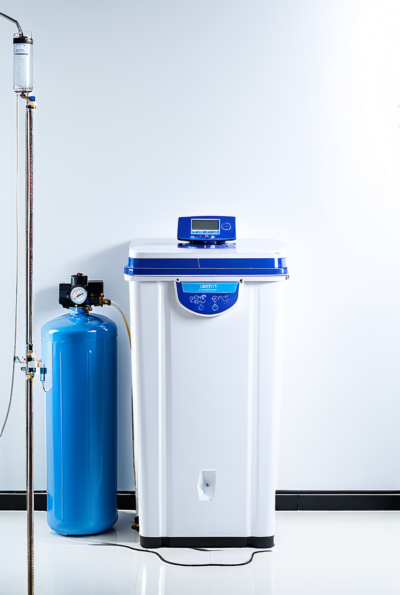 Устройство системы умягчения: управляющий клапан для автоматизации, солевой бак и их роль в процессе водоподготовки.