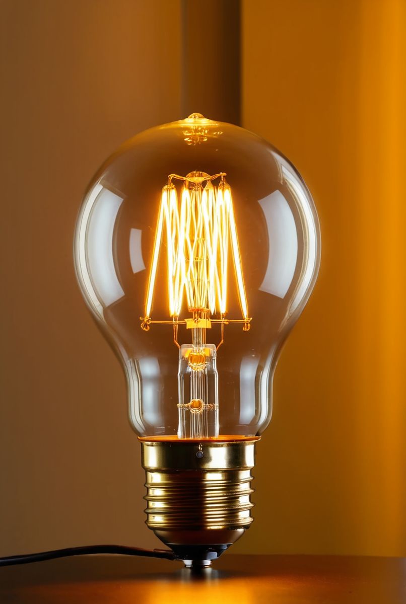 - Стеклянная колба: В отличие от матовых пластиковых рассеивателей обычных LED-ламп, здесь используется прозрачная стеклянная колба, часто наполненная инертным газом (например, гелием) для лучшего отвода тепла от нитей.