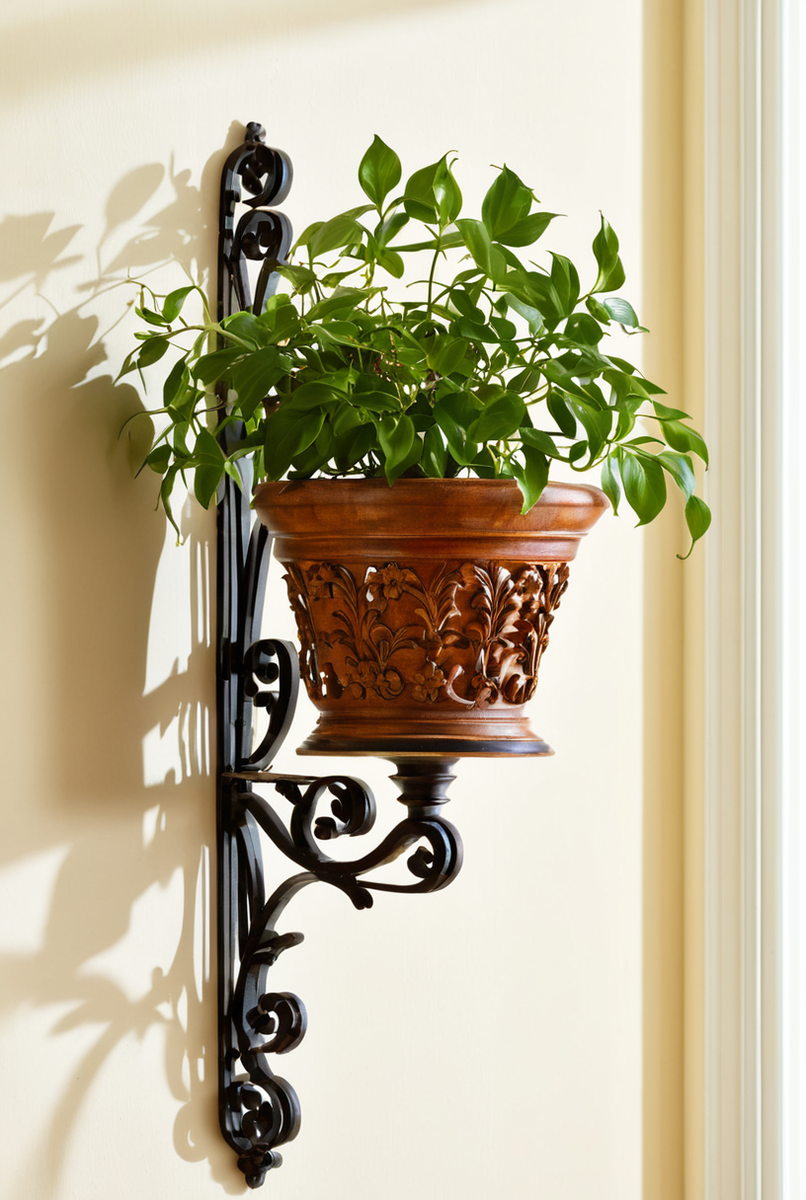 Кронштейн декоративный – многофункциональный элемент интерьерного декора. Он служит держателем полки‚ создавая пространство‚ и креплением для кашпо‚ размещая подвесное кашпо с горшком для цветов. Этот настенный кронштейн выступает самостоятельным элементом декора стен‚ улучшая оформление интерьера и подчеркивая функциональность кронштейна. Его эстетика кронштейнов добавляет особый шарм.