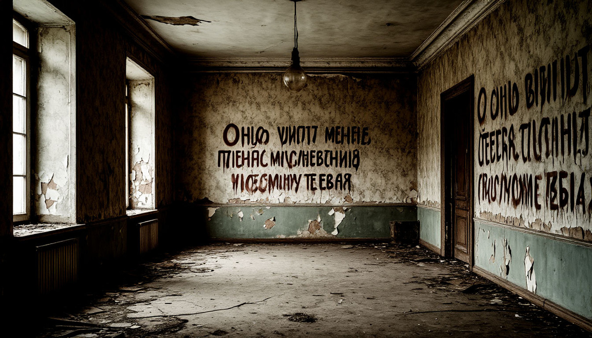 И поверх этих царапин, по всем четырем стенам, от пола до потолка, была написана одна и та же фраза. Она была написана не чернилами, не краской. Она была выведена чем-то бурым, засохшим, похожим на сукровицу, смешанную с землей. Буквы были кривыми, дергаными, разного размера, они наползали друг на друга, сплетались в безумный узор.