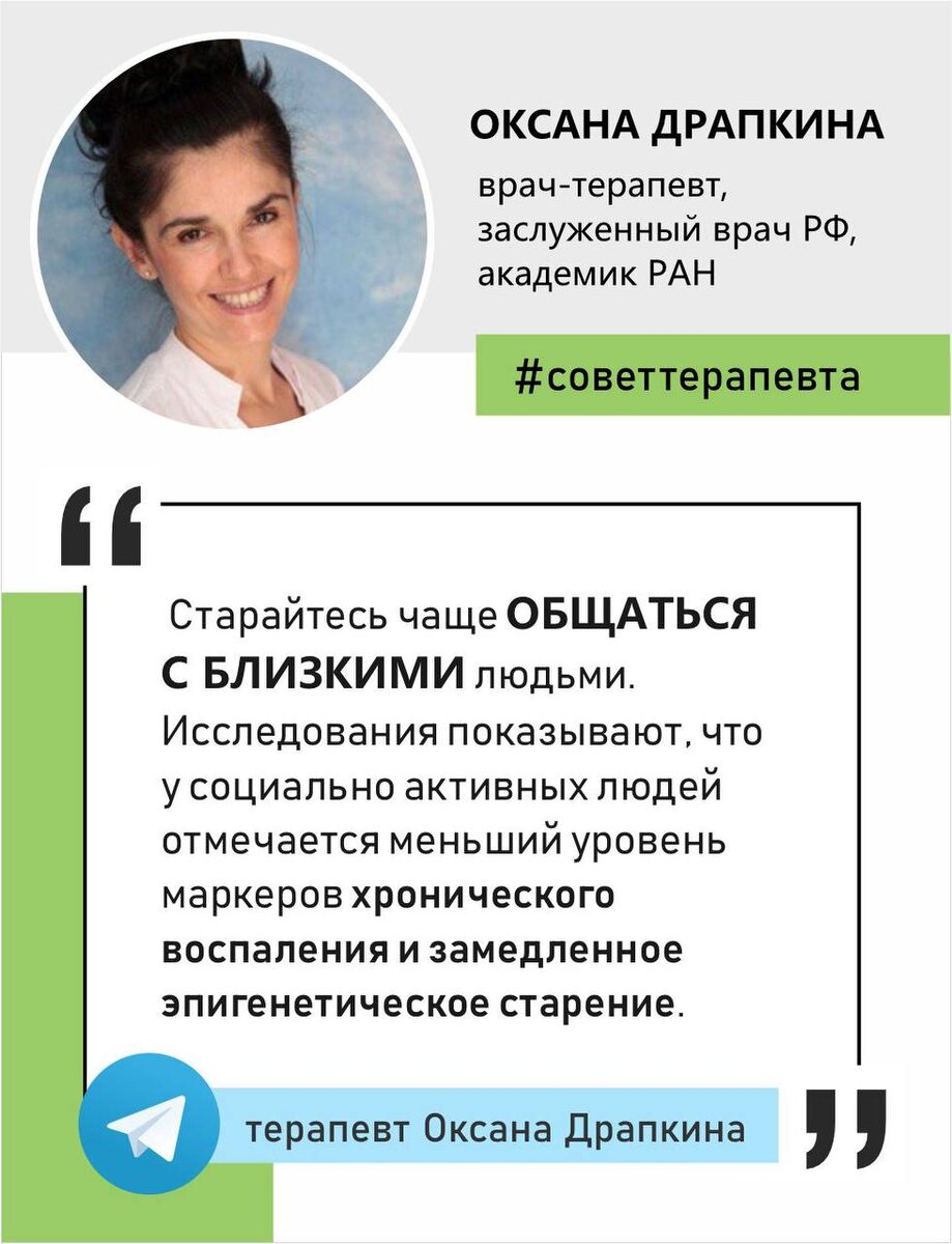 Совет дня от главного внештатного специалиста по терапии и общей врачебной практике Минздрава России Оксаны Драпкиной.
