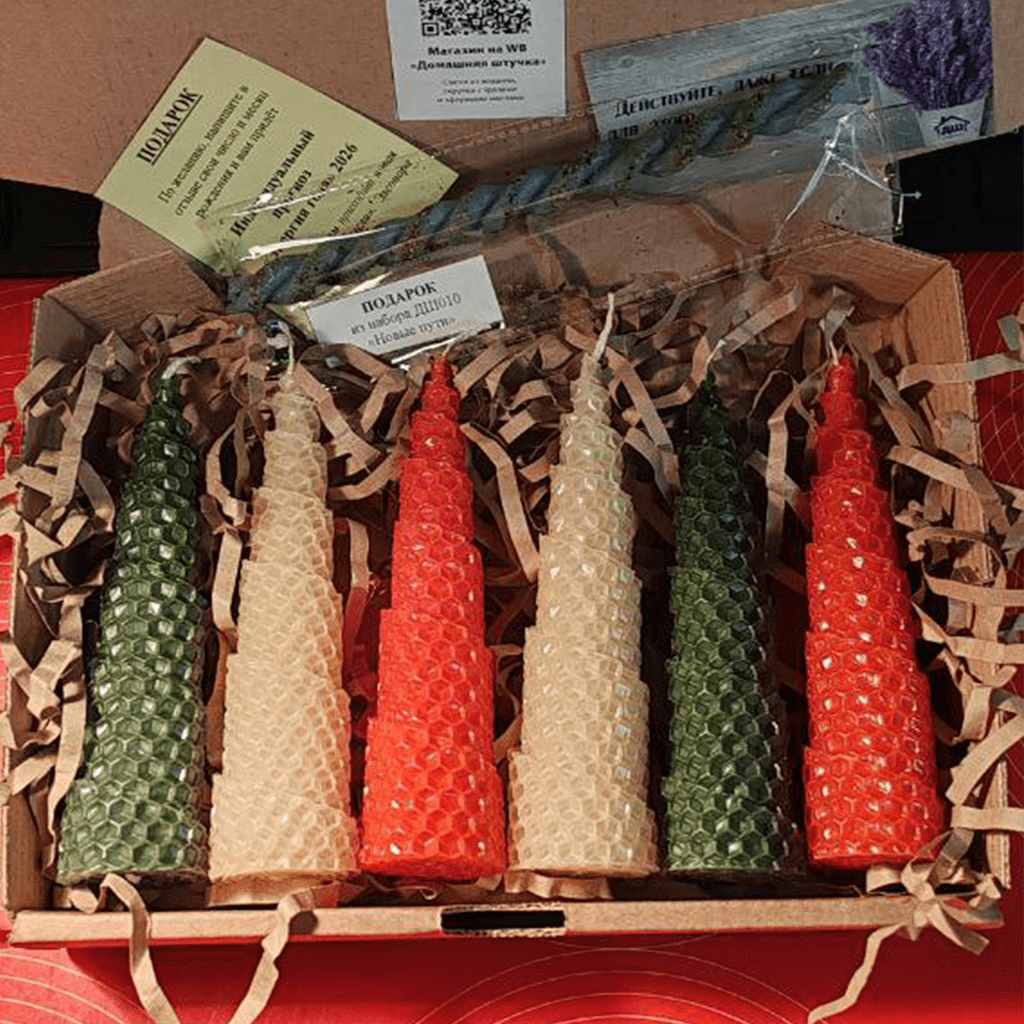 Знаете, что я люблю создавать руками больше всего? Нет, не полосатые носки — про них уже вся страна в курсе. У меня есть другая радость: свечи. Свечи из вощины, свечи-скрутки — аккуратные, тёплые, чуть медовые на запах и всегда с кусочком моего настроения внутри. Это одновременно релакс и удовольствие. Когда кладу лист вощины на стол, будто стираю с себя весь дневной стресс. Когда скручиваю будущую свечу — собираюсь мыслями. А когда вижу ровный, аккуратный цилиндрик или красивую фигурку — радуюсь, как ребёнок: опа, получилось! Ну и чего скрывать — это ещё и приятный небольшой доход. Свечи я продаю на Wildberries, если хотите посмотреть — вот моя страничка 👉 Домашняя штучка А сейчас у меня прямо предновогоднее волнение — готовлю новинку: свечи-ёлочки. Такие пухленькие, рельефные, праздничные! Стоят на столе — и сразу появляется ощущение, что Новый год уже на пороге, елка вот-вот загорится гирляндой, и можно наконец расслабиться.