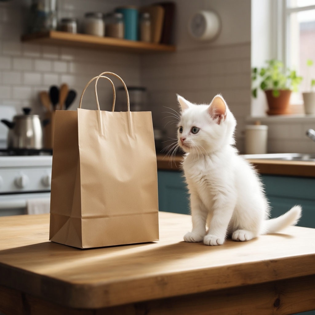 Однажды погожим утром Катя вернулась из магазина с большим бумажным пакетом. Он был полон всякой всячины: хрустящих хлебных булок, душистых яблок и чего-то ещё, что заманчиво шуршало внутри. Катя поставила пакет посреди кухни И начала разбирать покупки. Но её отвлёк звонок от мамы и она ушла отвечать на звонок, пообещав разобрать покупки через минуту. Этой минуты хватило котёнку Бусе. Тишину его утра нарушил один-единственный звук - шелест. Тот самый, что заставляет кошачьи уши навостриться, а сердце биться чаще. Это был не простой шорох, а целая симфония, доносящаяся из большого бумажного пакета, который Катя только что принесла из магазина. Его привлёк не столько запах, сколько ЗВУК. Тот самый, таинственный, шелестящий звук, который сулил невероятные приключения. Буся подобрался к пакету, как заправский разведчик. Он обошёл его кругом, дотронулся лапкой – пакет в ответ подозрительно зашуршал. Это была не просто сумка! Это была Шуршащая Пещера, полная загадок и опасностей. Буся подкр