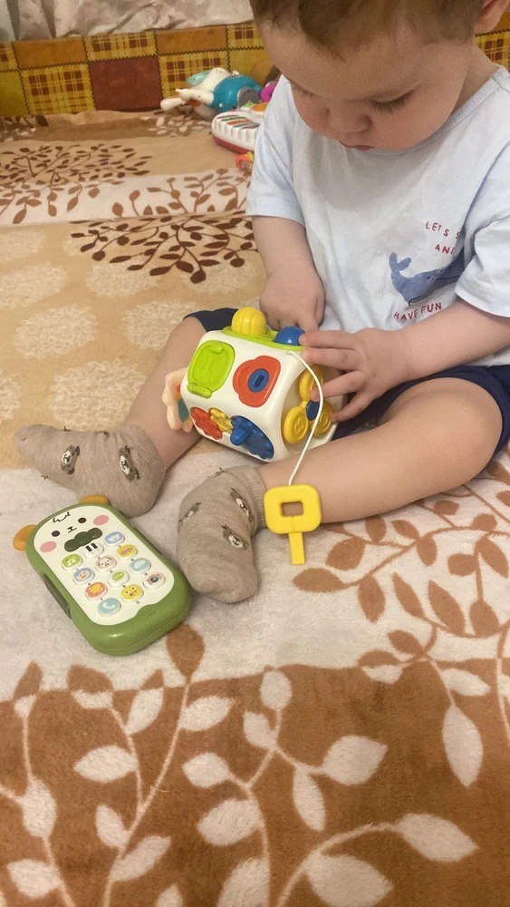 Интересно, что отношение к новым снарядам на площадке во многом отражает то, как мозг привык встречать новые задачи в целом. Если дома у ребёнка есть возможность пробовать, исследовать, ошибаться и действовать самому, площадка становится продолжением этого опыта. Очень помогают игрушки и материалы, где есть понятная, но посильная задача. Например, куб с дверцами и замочками: сначала он изучает одну дверцу, потом вторую, потом придумывает свою последовательность. Или панель, где нужно повернуть ручку, открыть окошко, протянуть шнур через ряд отверстий.