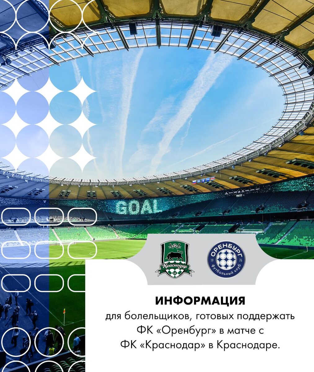Информация для болельщиков ФК «Оренбург», желающих посетить матч против ФК «Краснодар