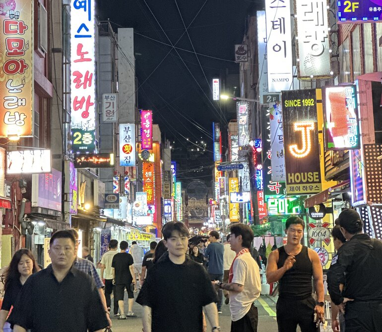 Если Сеул — это энергия и бизнес, то Пусан — его полная противоположность. Он встречает тебя неоновыми вывесками, запахом морепродуктов и ветром, от которого волосы тут же становятся частью композиции. Пляж Хэундэ — длинный, спокойный, идеально чистый — лежит буквально под небоскребами, и эта странная география моментально сбивает дыхание. Как будто кто-то поставил Дубай на паузу и добавил туда душу. Не обошли туристы стороной и местный знаменитый рыбный рынок, где тебе подают свежайшую рыбу в блюдах кафе на втором этаже.