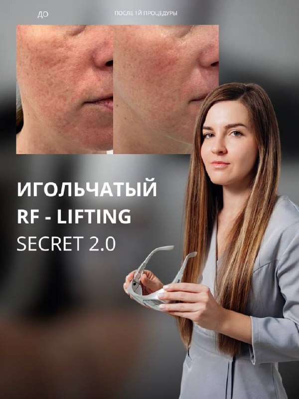 ✨ Secret 2.0: Революция в омоложении и преображении кожи! ✨ Хотите вернуть коже молодость, упругость и сияние без хирургического вмешательства? Мечтаете избавиться от морщин, рубцов и дряблости? Тогда приготовьтесь познакомиться с настоящим секретом преображения – игольчатым RF-лифтингом Secret 2.0! 🚀 В Doctor Kukla мы рады представить вам эту передовую процедуру, которая сочетает в себе два мощных метода для достижения невероятных результатов! 💫 В чем уникальность Secret 2.0? • Двойное воздействие. Одновременная стимуляция механическими микропроколами и RF-энергией дает синергичный, усиленный эффект! • Глубокое проникновение. RF-энергия доставляется точно в нужные слои кожи, минуя поверхностные повреждения, что сокращает период реабилитации. • Контролируемость. Наш специалист точно настраивает глубину проникновения игл и интенсивность RF-энергии, адаптируя процедуру под ваши индивидуальные потребности. • Универсальность. Подходит для лица, шеи, декольте, рук и даже для бо