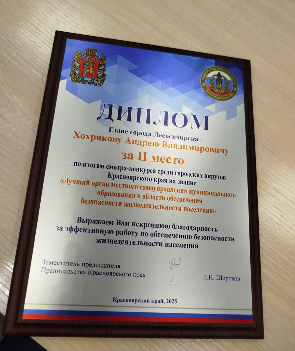 Лесосибирск занял II место по итогам смотра-конкурса среди городских округов Красноярского края "Лучший орган местного самоуправления в области обеспечения безопасности жизнедеятельности населения".