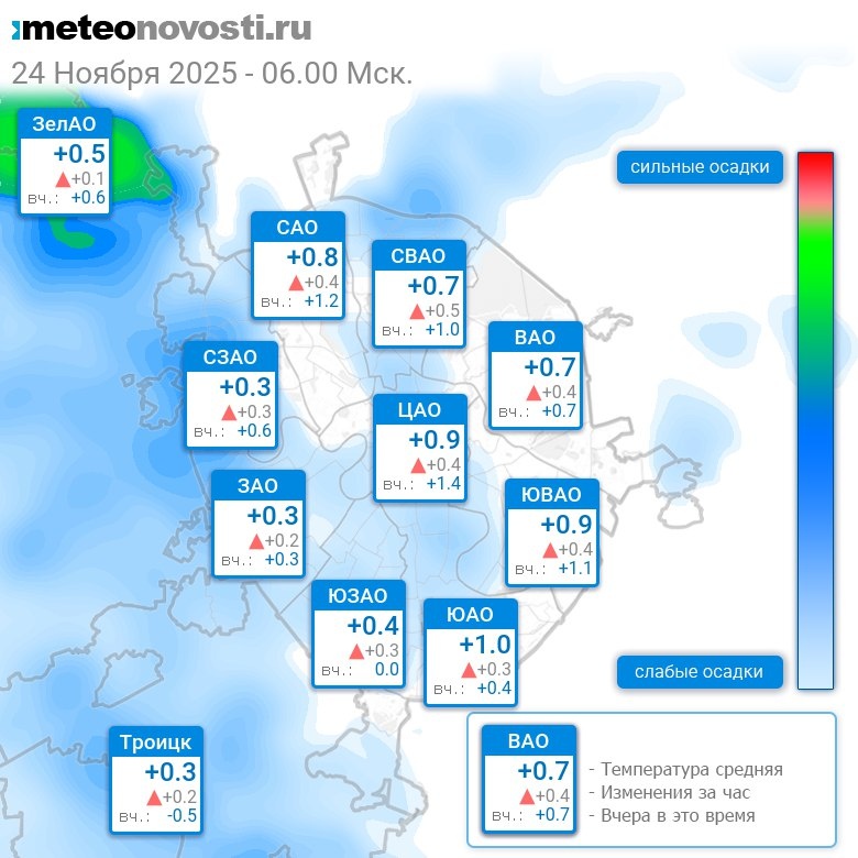 В 6:00 в Москве было от -0.3°C до +1.5°C, средняя температура +0.6°C #погода #Москва #осень #температура #24ноября #понедельник Перейти на сайт Прогноз погоды на 14 дней