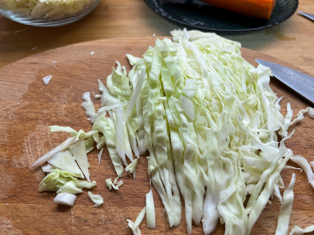 - Яйца Сначала шинкуем капусту небольшого объёма. Добавляем натертую морковь. Немного муки. Яйцо, я добавила два. Наверное муки пересыпала. Подсолила немного. Формируем на сковородке что-то типа пончиков. Внутрь по оригинальному рецепту добавляли желтки, я добавила яйцо целиком. Сверху можно посыпать кунжут и посолить/поперчить по вкусу. Обжариваем под крышкой с двух сторон и завтрак готов! У меня отборное яйцо, думаю в следующий раз попробовать с яйцами второй категории, они меньше. Либо с перепелиными. Как вам рецепт? Готовили что-то подобное? Мне в целом понравилось. Я редко готовлю капусту. Но тут прям понравилось ♥️🤗 Ещё больше полезных и быстрых рецептов завтраков у меня в подборке ЗАВТРАКИ.