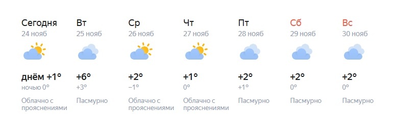 На календаре — последняя неделя ноября. Обычно в это время в Челябинской области уже устойчивый минус и снег, однако в этом году погода балует южноуральцев теплом. По данным синоптиков, до конца осени ситуация не изменится: температура сохранится плюсовой, а снежного покрова не предвидится. Подробнее о погоде с 24 по 30 ноября — в материале ИА «Первое областное». «В уральских регионах благодаря антициклону в первую половину рабочей недели вероятность осадков невелика. К выходным регион накроют поля фронтальной облачности, местами пройдут снег и дождь. Температура воздуха — от −1 до +4 градусов»,— рассказали синоптики центра «Фобос». В Челябинске, предварительно, осадков не ожидается на протяжении всей недели. Температура воздуха будет варьироваться в пределах от +1 до +6 градусов. Самым теплым днем станет вторник. Фото: сервис Яндекс.Погода На юге региона до среды будет облачно и аномально тепло: воздух прогреется до +7 градусов. С четверга прояснится, похолодает до +2. На севере Челяб
