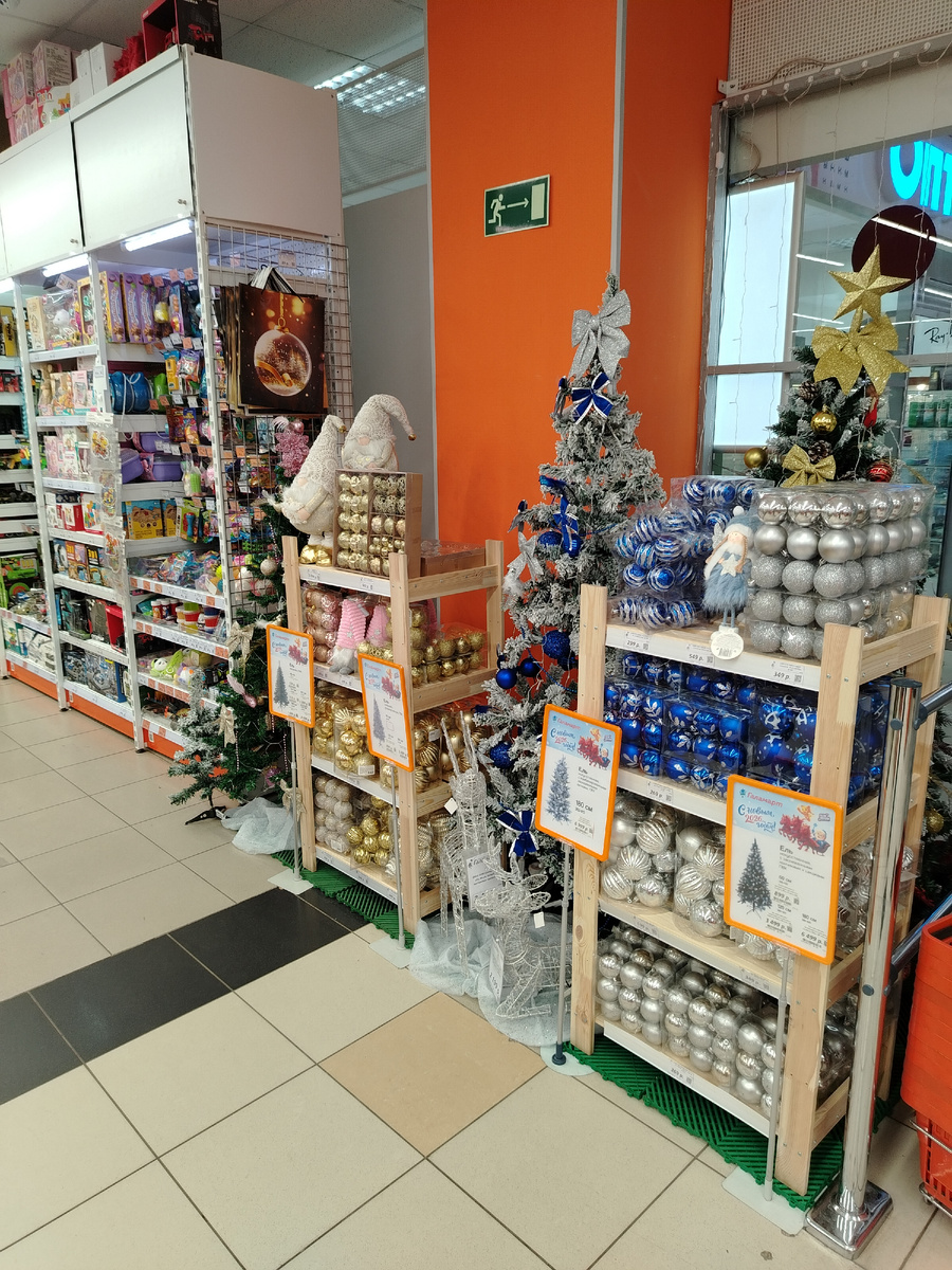 Сегодня поехала в торговый центр, чтобы приобрести одежду детям. Закупившись вещами, уже направилась к выходу. Но на первом этаже были два рядом стоящих магазина: «Галамарт» и «Фамилия». За витринами, естественно, был по-максимому выставлен новогодний декор, всё светилось, чтобы привлечь внимание покупателей. Вот и я не смогла пройти мимо. «Галамарт» позиционирует себя, как я поняла, магазином, в котором есть всё, кроме одежды. Можно прийти туда за гирляндой и купить чайник, или прийти за посудой и взять косметику для лица и «Бады». Не сказать, что в магазине есть полноценные полки с едой, как в продуктовом. Но тем не менее, есть лапша быстрого приготовления и различные сладости. Но не буду далеко отходить от темы. Как я уже рассказывала, первое, что видно за порогом магазина, а также первое, что видно при входе, это новогодний ассортимент. Его там... Даже не море, а океан. Как будто «Галамарт» выкупил целый склад с новогодним декором и выложил всё и сразу. Всё безумно