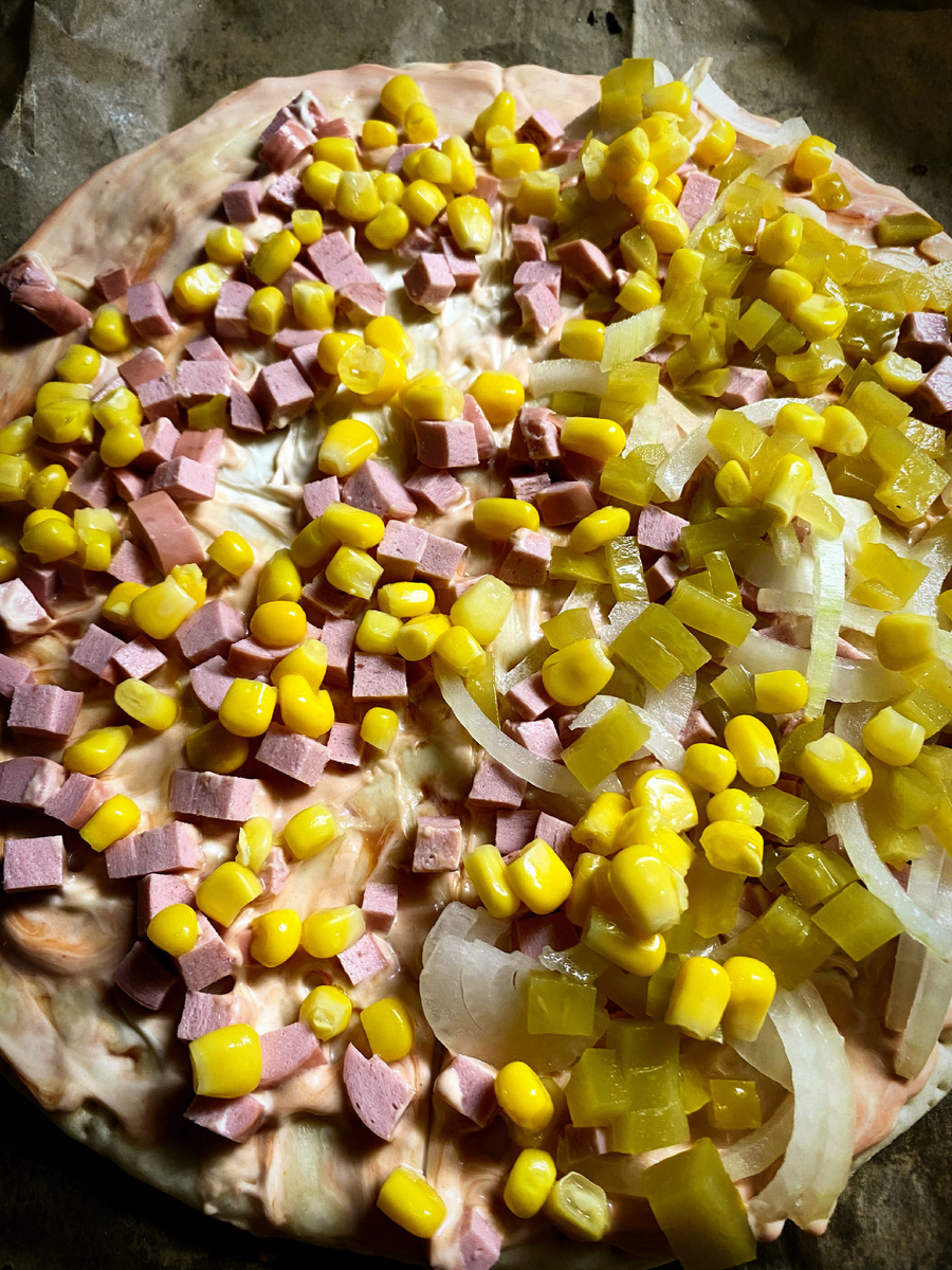Мне нравится готовить домашнюю еду: котлеты, борщи, пироги и торты. Но и фастфуды тоже люблю. Хочется иногда вредненького поесть. В один из вечеров с дочкой устроили вечерний пир с просмотром фильма «Хроники Нарнии». Купила заготовку для пиццы. Намазала её любимым майонезом и кетчупом. Колбаски под рукой не было, порезала сосиски и добавила кукурузы консервированной. Одна половина была дочки Лёль, а в свою добавила ещё маринованные огурцы и лук. Сверху пиццы натёрла сыр. Пока пеклась пицца, взялась за хостеры. Достала аэрогриль и сложила в него хостеры. Поставила на 10 минут готовиться. Нажарила пельмени. В пиалу налила соевый соус к ним. Вот такая вечеринка с вредной едой у нас получилась. Фильм «Хроники Нарнии» посмотрели мы с удовольствием 😉
