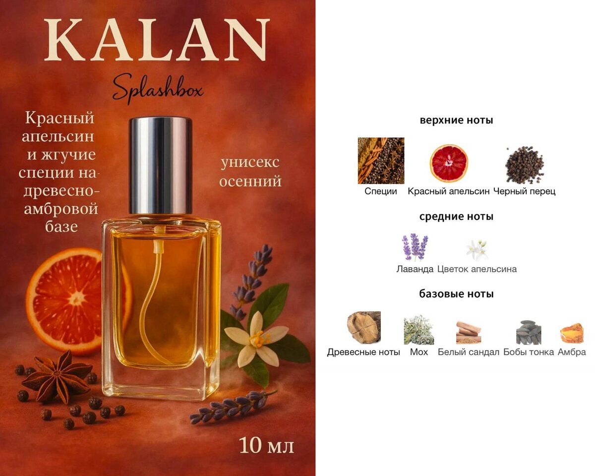 🍁🍁🍁🍁🍁🍁🍁🍁🍁 🤩🤩🤩🤩🤩🤩 🤩🤩🤩 🍁🍁🍁🍁🍁🍁🍁🍁🍁 Всем привет! 🤩 🍋🟩 Kalan - красный апельсин и жгучие специи на древесно-амбровой базе 💞Арт. 141259454 ❤️Аромат-референс: Kalan Parfums de Marly ❤️Пирамида: Верхние ноты: Специи, Красный апельсин и Черный перец Средние ноты: Лаванда и Цветок апельсина Базовые ноты: Древесные ноты, Мох, Белый сандал, Бобы тонка и Амбра ❤️Звучание: Мощное и остро пряное вступление, где специи, красный апельсин и чёрный перец создают яркое, огненное ощущение. Это очень энергичное и захватывающее начало, которое захватывает внимание сразу. Специи придают аромату пикантность и глубину, а красный апельсин добавляет сочную цитрусовую свежесть, контрастируя с пряными акцентами. В сердце аромата появляются более мягкие, но не менее выразительные ноты. Лаванда добавляет чуть более спокойную, травяную свежесть, которая гармонично переплетается с цветком апельсина, который привносит в композицию лёгкость и цветочную сладость. Это сочетание дел
