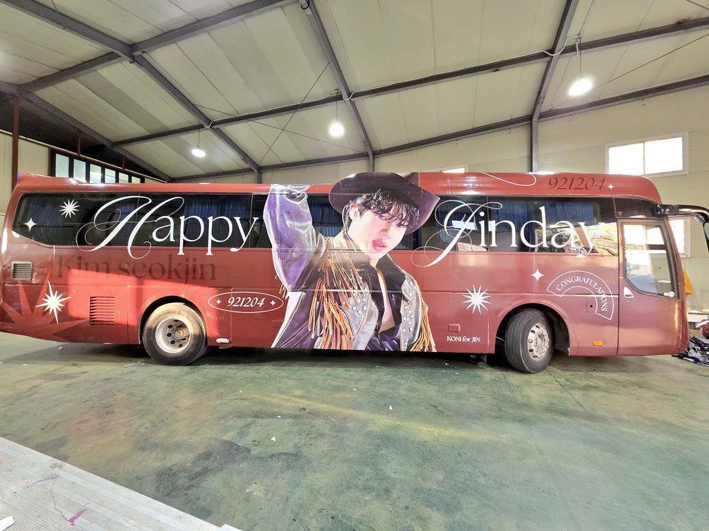 🍊 Автобус в честь дня рождения Джина от японских и корейских фанбаз курсирует в Сеуле по маршруту Hybe - станция Ёнсан - Hybe