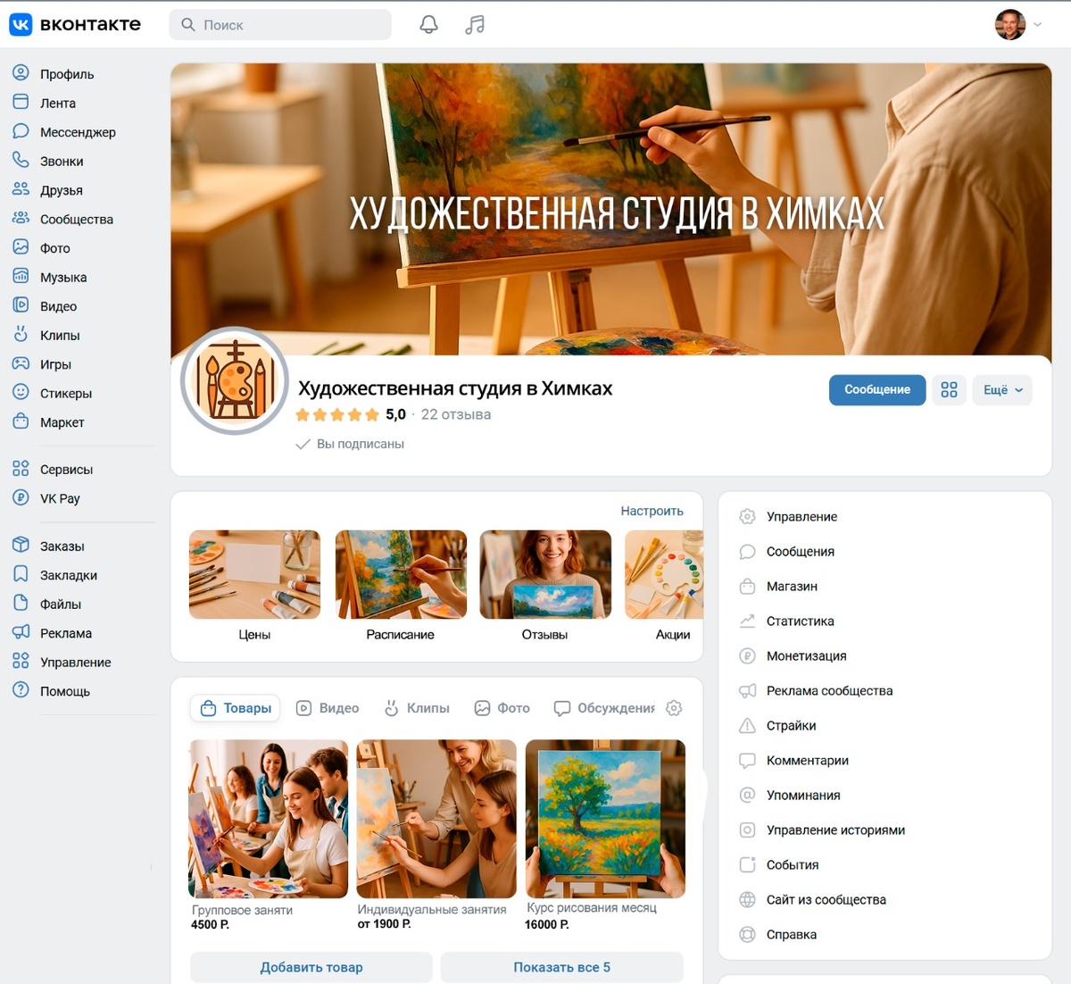 Задача была чёткая — создать систему продвижения во ВКонтакте, оформить сообщество, запустить таргет, чтобы студия наполнялась группами без постоянных акций и скидок. Ошибка многих творческих студий — обращаться сразу ко всем. На деле каждое направление имеет свою аудиторию и мотивацию. Целевая аудитория: • Дети 6–12 лет и их родители — развитие креативности, рисование для удовольствия. • Подростки — углублённые курсы, подготовка к поступлению в вузы. • Взрослые 25–45 лет — хобби и антистресс. • Пары и друзья — мастер-классы «по выходным» для отдыха. Для каждой аудитории мы разработали свой оффер и tone of voice: для родителей — «Ваш ребёнок сможет творить и поверить в себя». Для взрослых — «Р