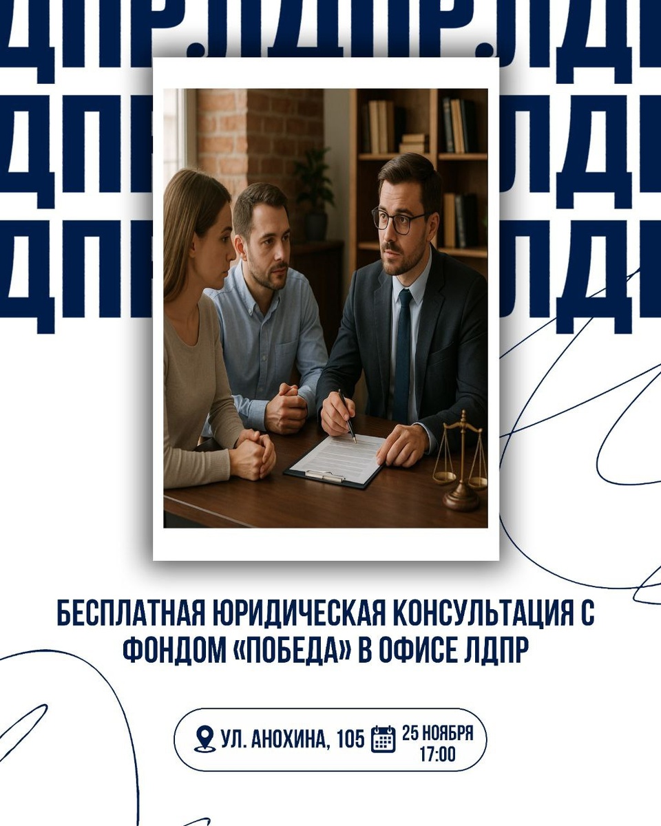 Русский – не значит бедный!Всероссийские юридические консультации для участников СВО и членов их семей, пенсионеров, ветеранов, людей труда в рамках проекта "Трудовая доблесть России" 📅 25 ноября в 17:00 приглашаем всех желающих посетить бесплатную юридическую консультацию, которая пройдет в офисе ЛДПР по адресу улица Анохина, 105. Это отличная возможность получить квалифицированную помощь и ответы на самые разные юридические вопросы — от жилищных споров и семейного права до вопросов защиты прав потребителей и трудовых отношений. Консультация проводится фондом «Победа», который представляет профессиональных юристов с большим опытом работы в различных правовых сферах. Приходите, если вам нужна поддержка или просто хотите разобраться в юридических тонкостях. Ждём вас! #лдпр #забайкальскийкрай