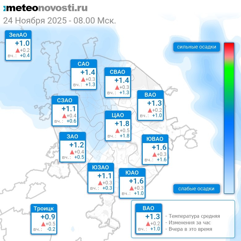 В 8:00 в Москве было от +0.4°C до +2°C, средняя температура +1.3°C #погода #Москва #осень #температура #24ноября #понедельник Перейти на сайт Прогноз погоды на 14 дней