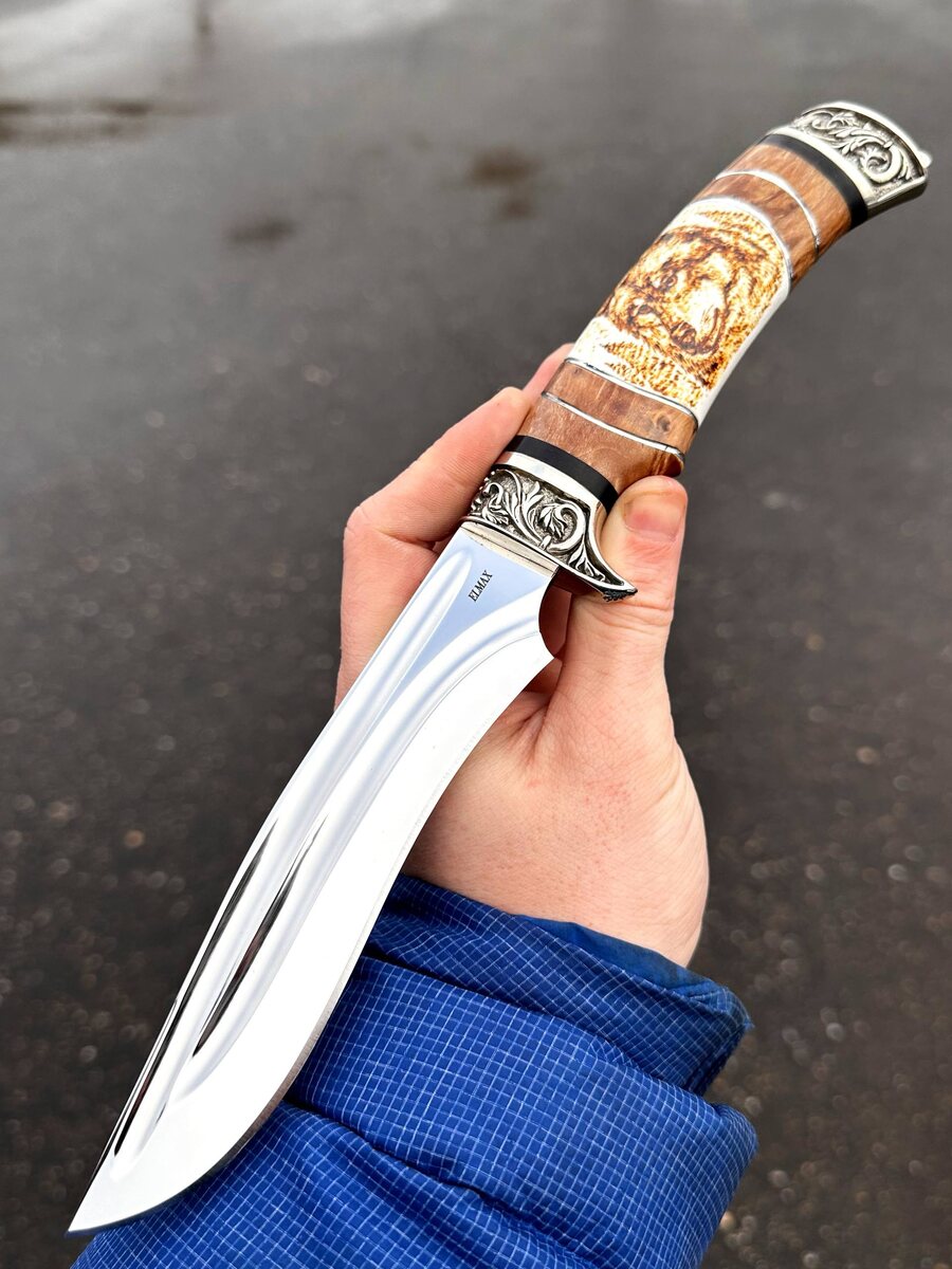 🦌 Разделочный нож «Волк» — когда детали действительно важны! Встречайте: эксклюзив в наличии — *разделочный нож «Волк»* из премиальной стали Elmax с уникальными долами на клинке. ⠀ Что даёт дол? ➖ Не даёт налипать продуктам ➖ Повышает балансировку ножа ⠀ Рукоять — настоящее искусство: • Мельхиор (техническое серебро) • Стабилизированная карельская берёза (коричневая) • Рог лося с авторским выжиганием с обеих сторон ⠀ ✅ Гарда — травмобезопасная ✅ Микроподвод всего 0,3 мм, бритвенная заточка ✅ Твёрдость клинка (HRC): 62 ⠀ *В комплекте — ножны из натуральной кожи* *Хотите формованные ножны? +8000 ₽* Цена: 37 757 ₽ → 33 181 ₽ ⠀ ⠀ 📲 Пишите для заказа: @Nazarklinokbot или на WhatsApp/Viber: +79101343831 ⠀ #нож #ноживналичии #Elmax #кузницаназарова #подарокмужчине #охота #рыбалка #туризм #ручнаяработа #коллекционныйнож #купитьнож