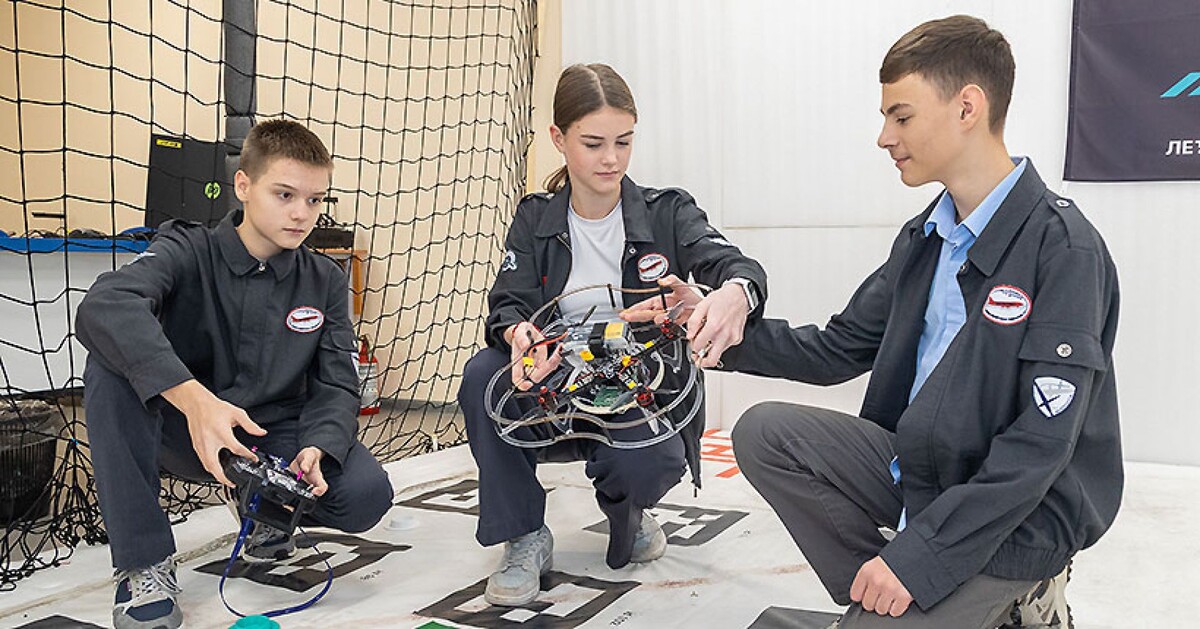 — Здесь у нас два кабинета. Первый — это лаборатория для сборочных схем. Второй — полётная зона, где ребята уже настраивают и тестируют дроны. Ребёнок может управлять дроном от третьего лица, в очках, создающих реальность, что он и есть дрон, и есть автономные полёты, когда школьник полностью пишет программу полёта с различными элементами, — рассказала учитель информатики и эксплуатации беспилотных авиационных систем Елена Васенина.