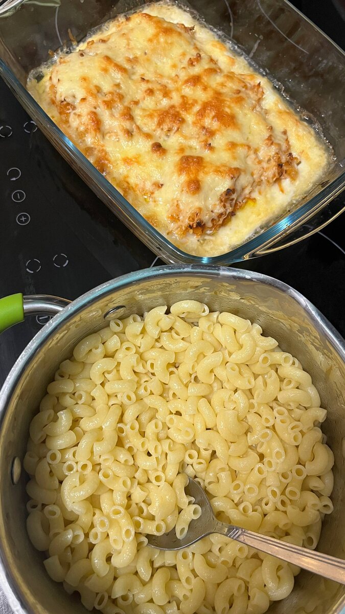 В форму для запекания, смазанную растительным маслом, выкладываем филе минтая (я предварительно разморозила). Режем мелко лук и трем морковь. Обжариваем на растительном масле. Выкладываем сверху на рыбу. Взбиваем яйцо со сметаной и солью. Поливаем сверху рыбу с морковью. Запекаем при 200°. За 5-10 минут до готовности посыпаем тертым сыром. Отдельно варим макароны. Сливаем воду и замешиваем с кусочком сливочного масла.