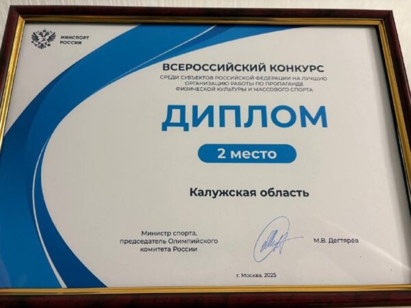 Регион расположился на второй строчке Всероссийского конкурса среди субъектов РФ на лучшую организацию работы по пропаганде физической культуры и массового спорта. Подробности рассказал министр спорта Олег Сердюков. Победителей выбирали по взаимодействию региональных органов власти со СМИ, общественными деятелями и активистами из сферы спорта. Также учитывались присутствие спортивных новостей в медиапространстве и ведение соцсетей. Отдельно подчеркнули вовлечение ветеранов СВО в занятия спортом. Награду вручили советник министра спорта РФ Александр Дюпин и пресс-секретарь Елена Парфёнова начальнику отдела информационно-аналитической работы министерства спорта Калужской области Марине Чернышёвой. Андрей Хорошавин / Калуга Сегодня, Олег Сердюков