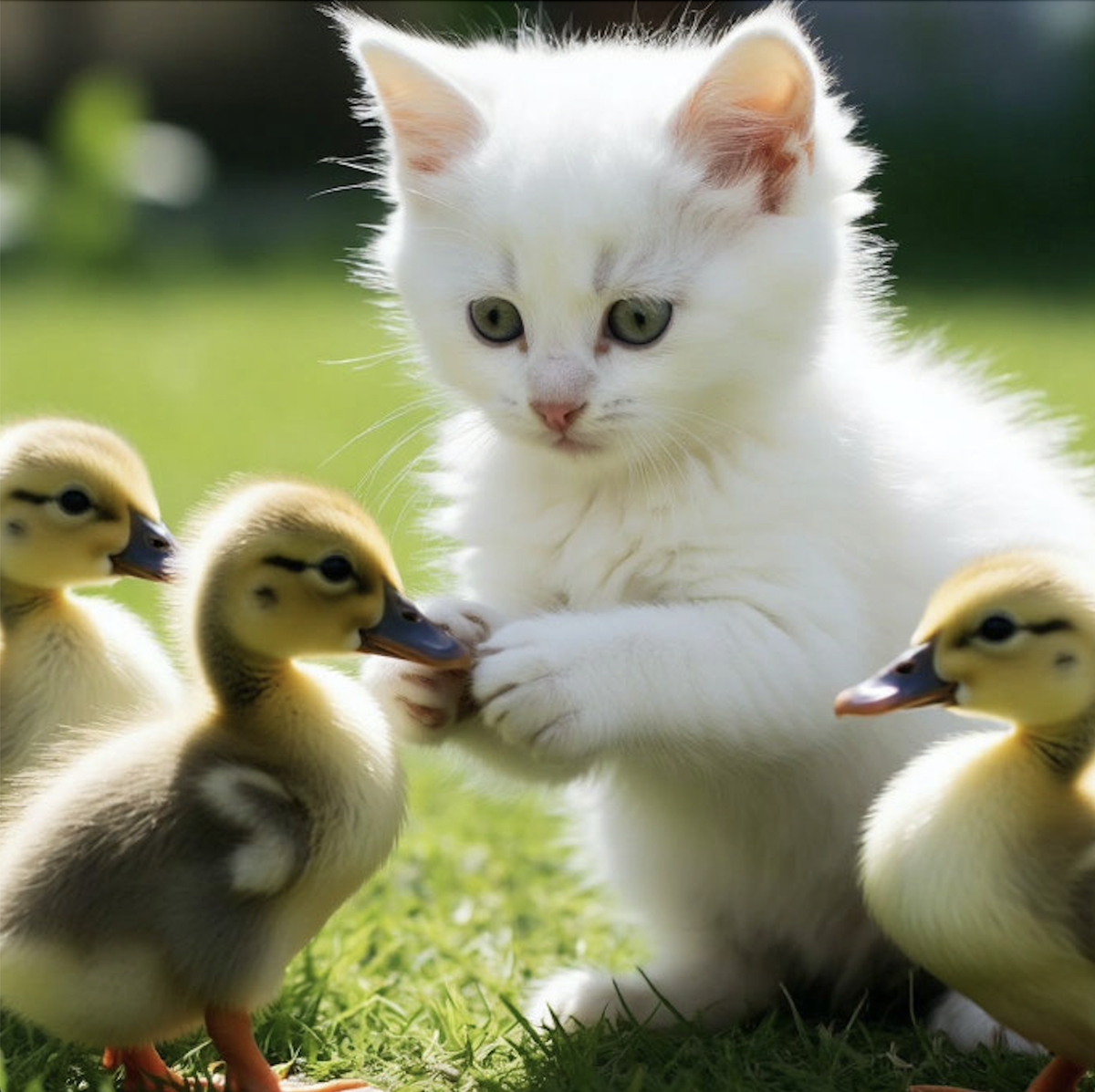 Лапками она показывала утятам как умывается сама : водила ими по усатой мордочке, ушкам и протирала шерстку розовым язычком. Утята смотрели, но ее не понимали.