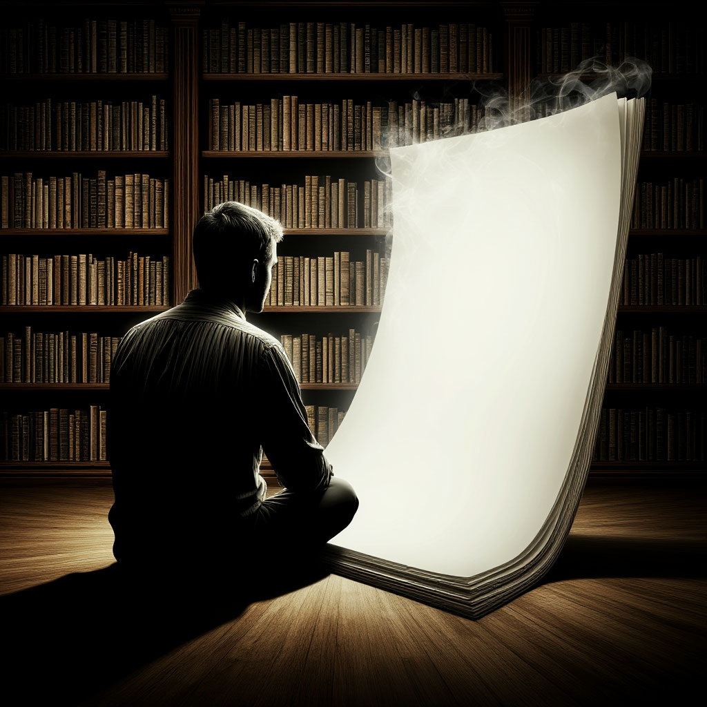 Он дал структуру, я вдохнул боль. Так рождалась эта история. Это не просто текст — это эксперимент. Коллаборация между холодным разумом алгоритма и горячим сердцем человека. Я попросил нейросеть стать моим соавтором, а она стала тишиной, в которой отозвалось эхо. Вот что у нас получилось. «Эхо в пустоте» Он всегда приходил в библиотеку в один и тот же час. Не для того, чтобы читать. Книги были лишь декорацией, молчаливыми свидетелями его ритуала. Он садился у окна, клал на стол старую, потрёпанную книгу в кожаном переплёте и раскрывал её на одной и той же странице. Страница была пуста. В первый раз библиотекарь, молодая женщина с внимательными глазами, подумала, что это случайность. Во второй — странность. К третьему разу это превратилось в тихое помешательство, за которым она наблюдала из-за стойки. Однажды она не выдержала.