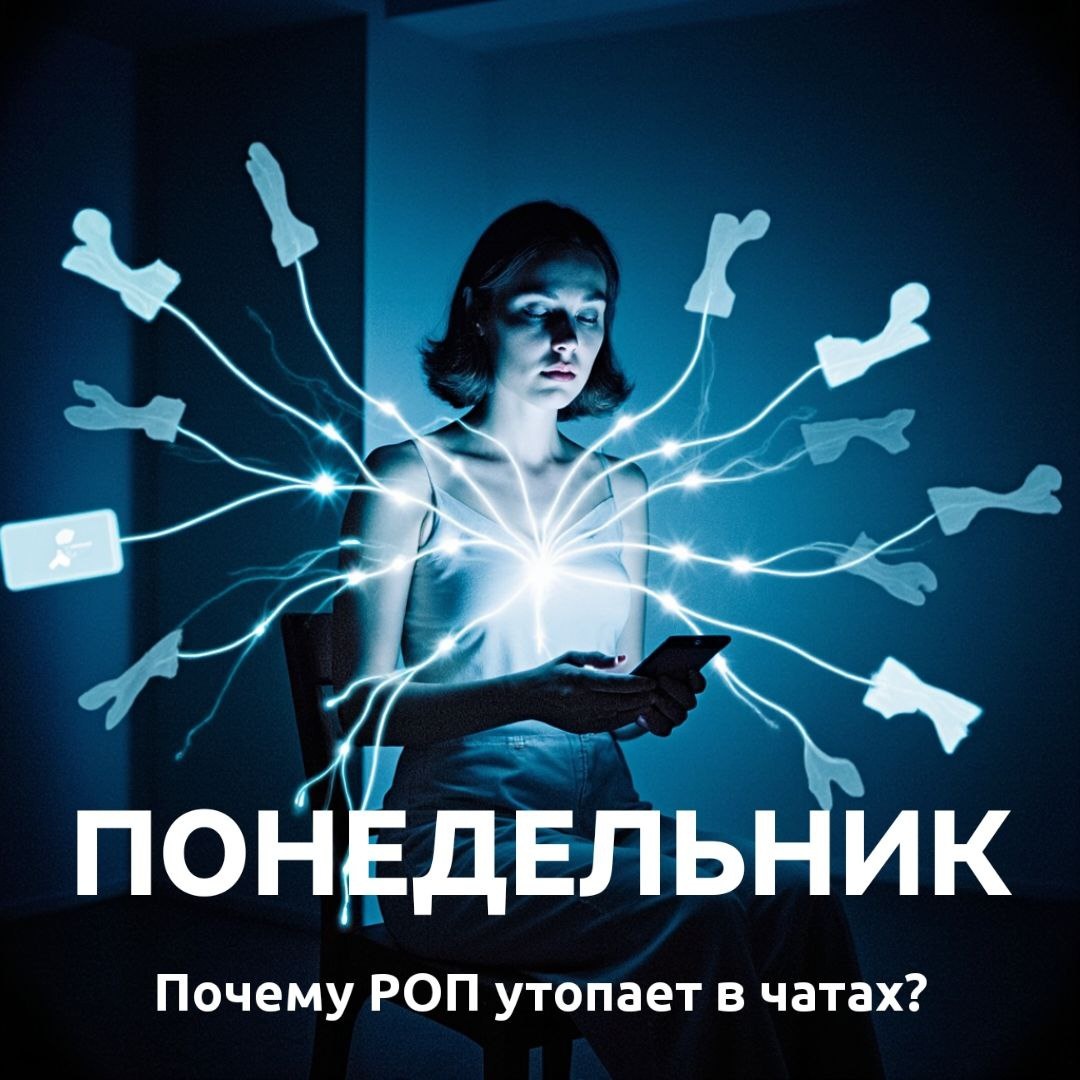 Итак, знакомься: Ника. РОП на удалёнке. День 1 — КОМАНДА. «Утро, в которое Ника боится выйти из чата» Серия 1 из 3 Понедельник. 08:07. Ника открывает ноут и автоматически тыкает в иконку мессенджера. На экране — 99+ непрочитанных. Чат отдела гудит, как серверная перед Чёрной пятницей: — «Это мой клиент или общий?» — «Кто берёт лид с вебинара?» — «А вот этот из рассылки — чей сегмент?» — «Я же вчера прозванивал, он холодный, не тратьте время». Чуть выше — сообщение от собственника: «Нужно добавить ещё один продукт в продажу. Скинь, кто потянет». Чуть ниже — от маркетинга: «Смотрели отказы - вы сливаете лиды. Сама, Ника проверь, если не веришь». Кофе ещё даже не налит. Тело ватное от недосыпа, голову сдавливает обруч. А пальцы уже бегут по клавиатуре: — «Этот лид — общий, бери Паша». — «Вот этот — твой старый клиент, закрепи за собой». — «Сегментация такая-то, см. файл сверху». Она даже в туалет идёт с телефоном. Потому что реальный страх не в том, что «упустим клиента».