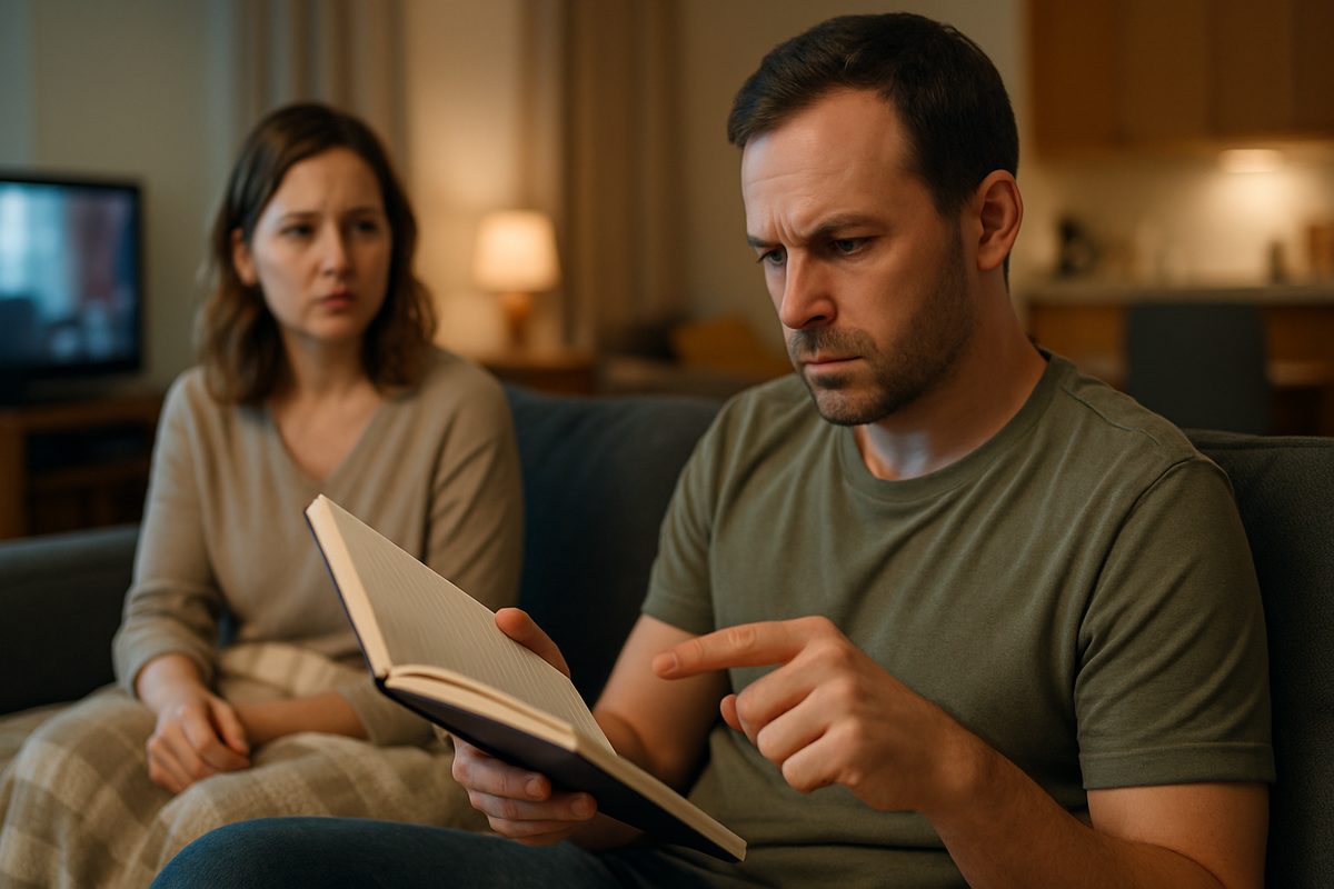 Обычный вечер: ужин, дети, сериал. Ночью жена заполнила тетрадь любви — список своих дел за день. Утром муж прочитал и увидел себя только в одной строчке. Теперь он требует пересчитать вклад и вернуть ему «долги по чувствам». Тетрадь появилась в кухонном ящике неделю назад. Тамара купила её вечером по дороге с работы. Клетчатые страницы, розовые сердечки, на обложке дата «2025». Супруга давно чувствовала усталость от бесконечных дел. Решила честно записывать всё, чем наполняет дом каждый день. Отмечала вымытые тарелки, собранные портфели, звонки родителям, проверенные дневники. Заполняла тетрадь поздно вечером за столом у окна. Рядом лежала ручка с синими чернилами, тикали часы. Страницу делила на две колонки: «я» и «мы». Радовалась каждой строке, где выходило общее дело, вроде семейной прогулки. Через несколько дней заметила, что колонка «я» разрослась списком уборки, стирки, уроков. Запись «мы» встречалась реже и слегка ранила сердце. Утром субботы Игорь искал чистые носки в ящике ко