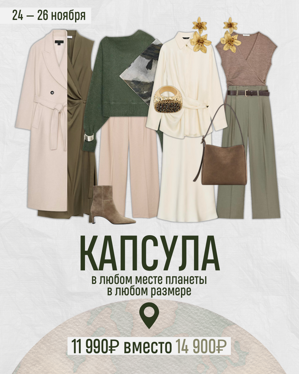 Что, если вы не в Москве, Питере или других городах центра страны или носите другой размер, не 40-50? Что, если вам нужно одеть мужа или ребенка? ⠀ 💡💡💡 ⠀ Мы работаем по всему миру🌐 В разных стилях от casual до glam-рок👗 Со всеми размерами📏 И с мужчинами тоже🕺🏼 И с детьми🧒🏼👧🏼 ⠀ Подбираем капсулы индивидуально в онлайн магазинах, которые доставляют к вам: в России и по всему миру. ⠀ Мы собирали капсулы на всех континентах, кроме Антарктиды🌎🌍🌏 ⠀ Обычно этот формат стоит 14 900₽. ⠀ 🛍Но сегодня на него акция – 11 990₽ при заказе с 24 по 26 ноября. ⠀ 👉🏻👉🏻👉🏻Заказать можно, как обычно, в анкете по 🔗 ⠀ Вы заполните анкету. Мы пообщаемся с вами в чате. И стилист вышлет вам документ с подборкой вещей, образов, комментариями и ссылками, где все это можно купить. ⠀ Так как подбор происходит онлайн, на каждую позицию в капсуле мы подбираем по 2-3 варианта, чтобы точно подошло. Если что, всегда будет, чем заменить. ⠀ Стилист остается на связи. И может доработать капсул