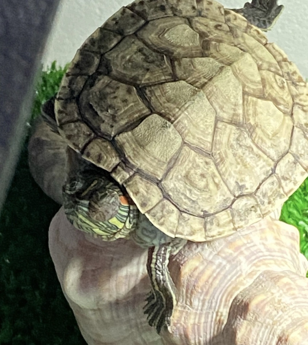 Красноухая черепаха — рептилия крепкая, но только до тех пор, пока ей дают тепло, свет и нормальную еду. Как только что-то одно «падает», черепашка тут же начинает болеть. И делает это тихо, без жалоб — пока ей совсем плохо. Поэтому важно знать основные признаки болезней и действовать вовремя. 1. Черепаха стала медленной, сидит на острове и почти не двигается ❗Чаще всего это — простуда или переохлаждение. Причины: — холодная вода — нет лампы нагрева — сквозняки Как выглядит: ✔ сидит на берегу и не залезает в воду ✔ вялость ✔ иногда “покашливает” или открывает рот ✔ плавает криво Что делать: — поднять температуру воды до 27–28°C — включить лампу нагрева — убрать сквозняки — обратиться к ветеринару-герпетологу (может понадобиться антибиотик) 2. Опухшие глаза, не открывает веки Вот такое мы проходили! Проснулись, а у Йоды опух глаз! ❗Чаще всего — авитаминоз или проблемы с водой. Причины: — мало витаминов в рационе — грязная вода — нет УФ-лампы (UVB) Как выглядит: ✔ глаза закрыт