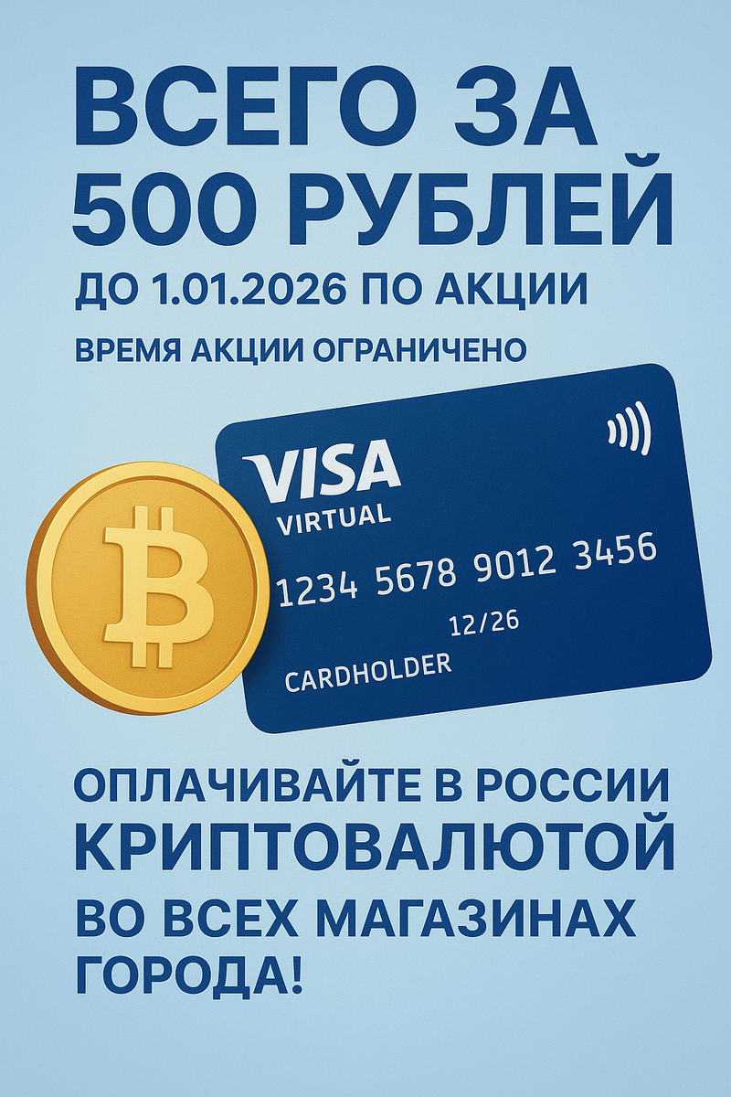 Виртуальная карта Visa за 500 ₽ до 1 января 2026: работает в России и по всему миру Представьте: вы сидите дома, открываете телефон и за пару минут получаете настоящую карту Visa, которой можно платить в любом магазине вашего города, на маркетплейсах и за границей. И всё это без походов в банк, без кучи документов и всего за 500 рублей по акции, которая действует до 1.01.2026. Почему сейчас тысячи людей оформляют именно такую карту Пополнение моментальное и удобное: рублями через СБП или криптовалютой прямо в телеграм-боте или мобильном приложении. Деньги приходят за секунды, никаких комиссий и ожиданий. В России карта решает сразу все задачи. Хотите купить что-то в обычном магазине? Просто покажите оплатить по QR коду — и платёж проходит как с обычной российской карты. Покупки на маркетплейсах, кафе, заправки — везде работает без вопросов. Даже если у вас больше нет действующих российских карт, эта продолжает работать стабильно. За границей ещё проще. Приложили телефон с оплатить по