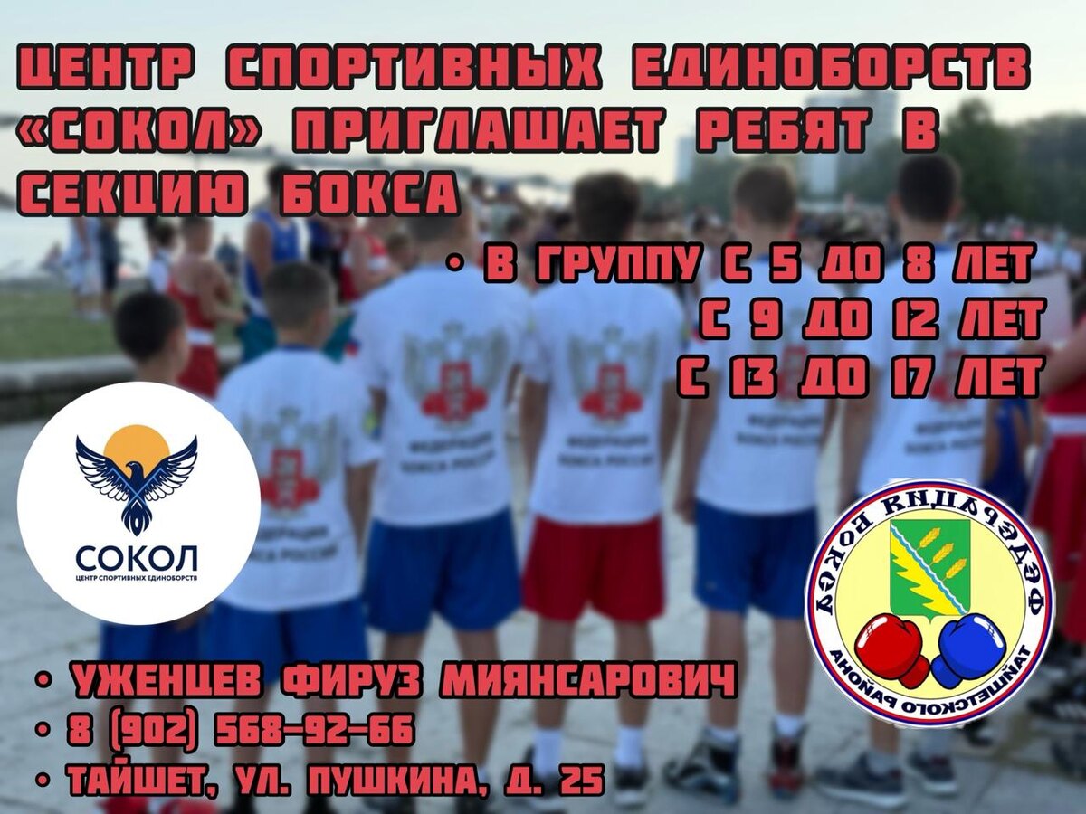🥊 Центр спортивных единоборств «Сокол» приглашает ребят в секцию бокса. Набор проводится в три возрастные группы: ⚪️от 5 до 8 лет; ⚪️с 9 до 12 лет; ⚪️с 13 до 17 лет. ➡️За дополнительной информацией обращайтесь к тренеру Фирузу Миянсаровичу Уженцеву по телефону: 8-902- 568-92-66.