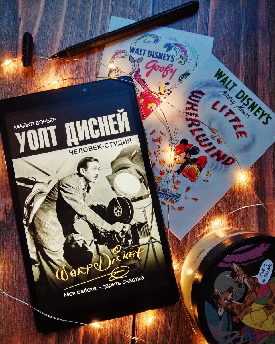 Книга М. Бэрьера – не вполне типичная биография; если б это было художественное произведение, его назвали бы производственным романом. И действительно: чисто житейские события, четкая хронология жизни прослеживается здесь постольку-поскольку – в их соотношении с карьерой, профессиональным ростом и творчеством Уолта Диснея. И подзаголовок «Человек-студия» как нельзя лучше раскрывает содержание книги. Мы проследуем весь трудовой путь героя от десятилетнего мальчишки-разносчика газет, молодого начинающего режиссера и управленца, работавшего на сторонних и собственной студии, до пожилого мэтра, владельца целого королевства имени себя с замками, поездами и Белоснежкой. Путь этот был полон взлетов и падений, режиссерских и художественных ошибок, разногласий с сотрудниками по совершенно различным причинам: иерархичности на студии, холодности и отстраненности самого Диснея, его перевоплощения из вдохновляющего «художника» в расчетливого «дельца», сокращений по чисто финансовым соображениям, –