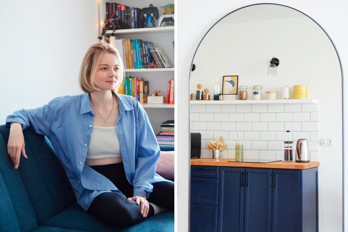 Фигурки на верхней полке — моя интерпретация картины Казимира Малевича «Спортсмены». Я люблю творчество Малевича и решила добавить его элементы в свой интерьер. Фигурки были куплены в IKEA. Во время пандемии, имея много свободного времени, я раскрасила их в цвета с картины. Это занятие стало для меня медитацией и помогло справиться с эмоциональным напряжением в тот период.