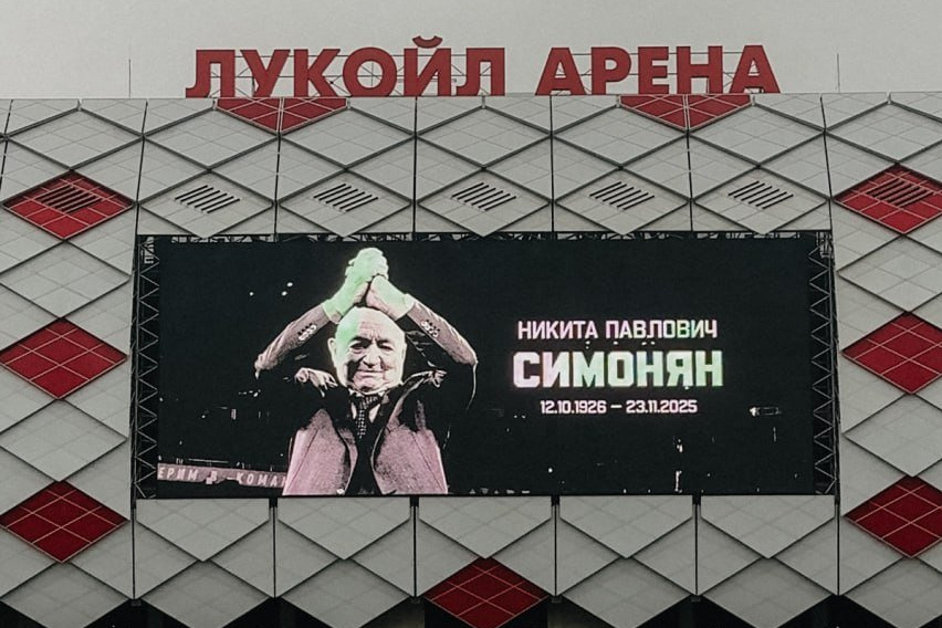 Фотография лучшего бомбардира в истории московского "Спартака" Никиты Симоняна появилась на фасаде домашнего стадиона клуба "Лукойл-Арена" в память о нем. Об этом сообщает пресс-служба стадиона. Симонян умер 23 ноября на 100-м году жизни. "Никита Павлович Симонян. 12.10.1926 — 23.11.2025", — написано на экране, размещенном на фасаде стадиона. Симонян по ходу карьеры выступал за московские "Крылья Советов" и "Спартак", в составе которого четыре раза выигрывал чемпионат СССР (1952, 1953, 1956, 1958) и два раза — кубок страны (1950, 1958). Симонян является лучшим бомбардиром в истории "Спартака" (160 голов). В 1956 году в составе сборной СССР он стал победителем Олимпийских игр в Мельбурне. В 1958 году в матче против команды Англии (2:2) забил первый мяч сборной СССР в истории финальных стадий чемпионатов мира. Завершил профессиональную карьеру в 1959 году. Позднее Симонян был главным тренером "Спартака", ереванского "Арарата", одесского "Черноморца" и сборной СССР. Под его руководством к