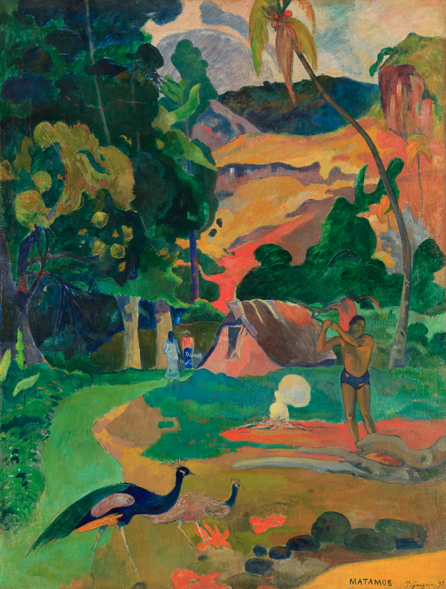 Картина Поля Гогена «Матамое (Смерть). Пейзаж с павлинами» привлекает внимание контрастом мрачного названия и жизнеутверждающего пейзажа таитянского леса. В углу картины художник своей рукой оставил надпись «смерть» на таитянском языке. Марина Александровна Бессонова, легендарный искусствовед Пушкинского музея, предложила интересную трактовку этого противоположения. Она ссылается на дневник Гогена «Ноа Ноа», где художник описывает, как во время рубки деревьев бок о бок с таитянами ощутил в себе «смерть» европейца. Марина Бессонова стала рассматривать эту картину как символ, рассказ Гогена о «гибели европейского сознания и рождении нового человека» в тропических лесах Таити. До 18 января в Пушкинском музее проходит выставка «Выбор Марины Бессоновой», посвящённая жизни и работе гениального искусствоведа. Выставку сопровождают тексты о произведениях в постоянной экспозиции Галереи искусства стран Европы и Америки XIX-XX веков, к исследованию и атрибуции которых имела отношение Марина Бесс