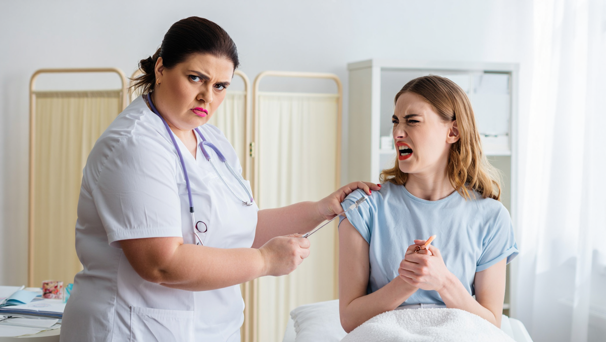 – Вы вообще собираетесь делать укол или мне до вечера тут сидеть?