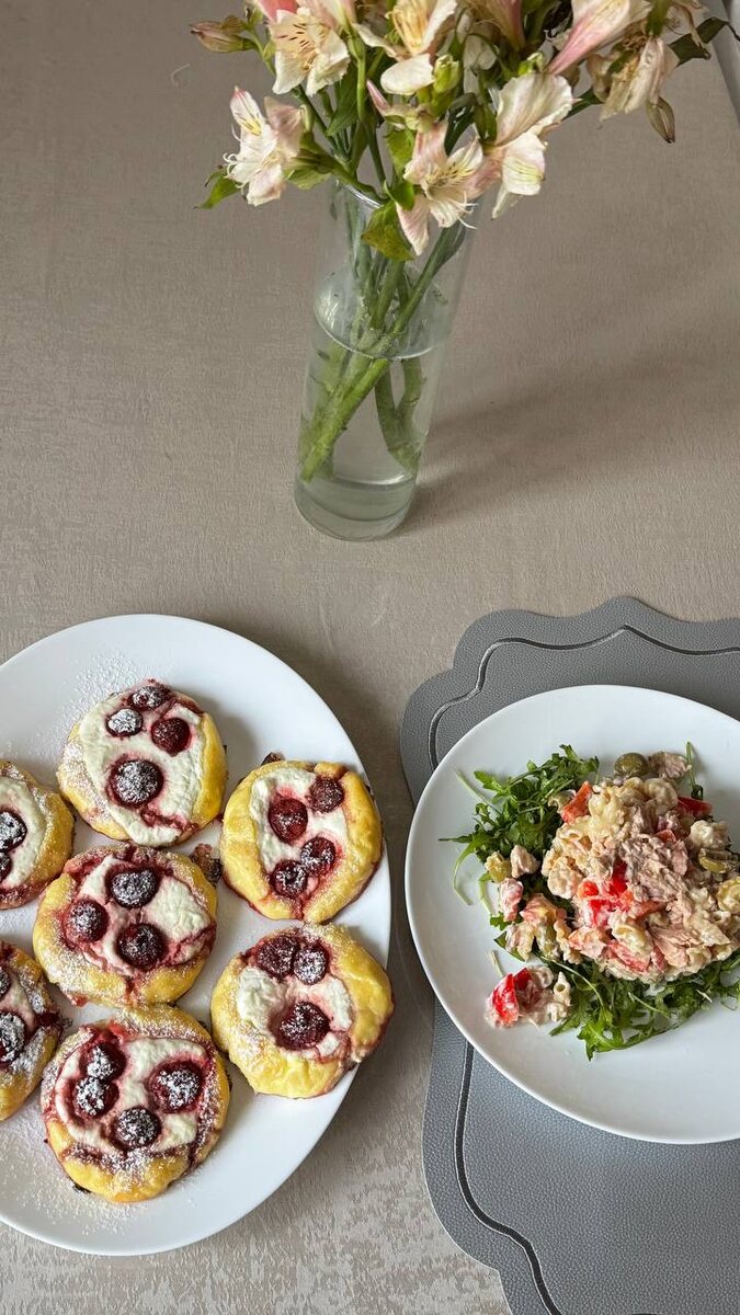 На обед паста-салат с тунцом и ватрушки. Сегодня попросили мои мужчины еще раз приготовить. Еще бы!..они же просто тают во рту.